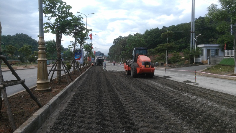 Thi công hạng mục Mặt đường (Tái sinh nguội tại chỗ mặt đường Atphalt bằng bitum bọt và xi măng – Strengthening material ) thuộc gói thấu CP15-16-17 quốc lộ 6 Sơn La